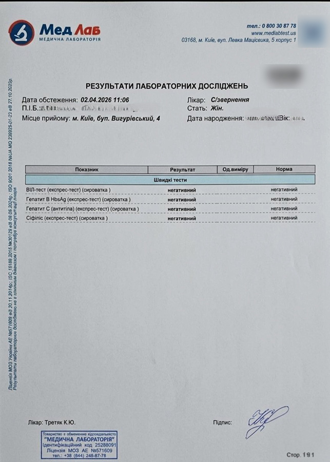 Анализ на СПИД, гепатит, сифилис (02.04.2026)